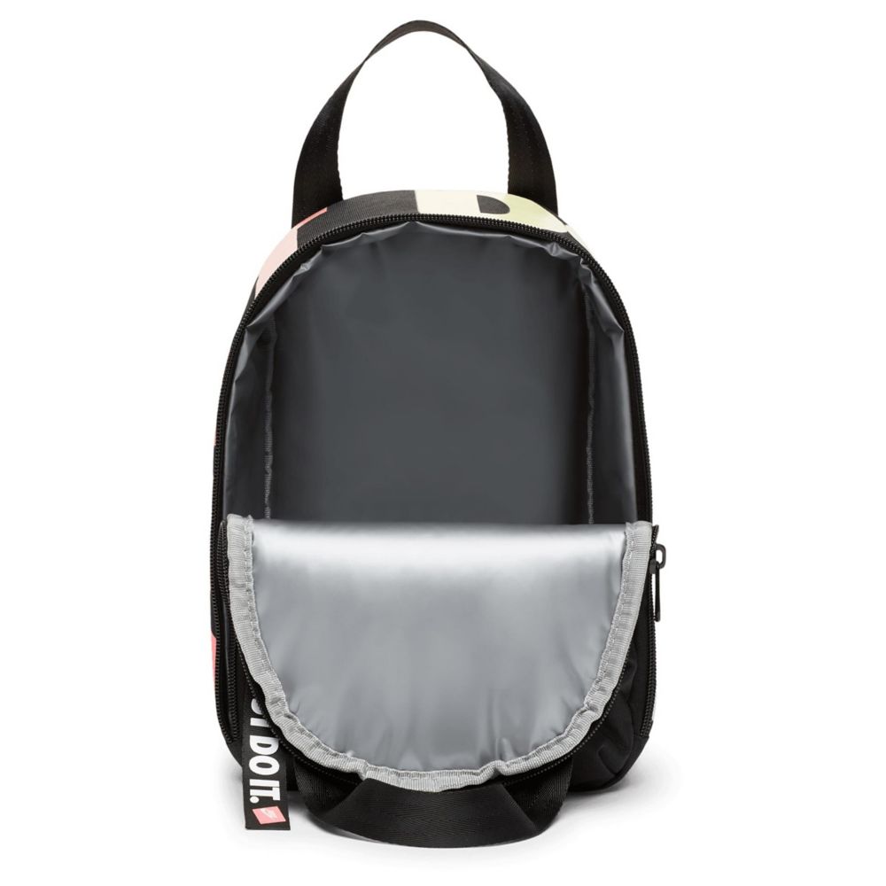 Keep her lunch fresh with the Nike JDI Shine girls' lunch bag. Made of polyester material with dual top handles for easy carrying, this pack has a spacious main compartment with PEVA insulation to help keep food cool. A front zip pocket easily stores smaller items, while the back ID card slot makes sure everyone knows it's hers.