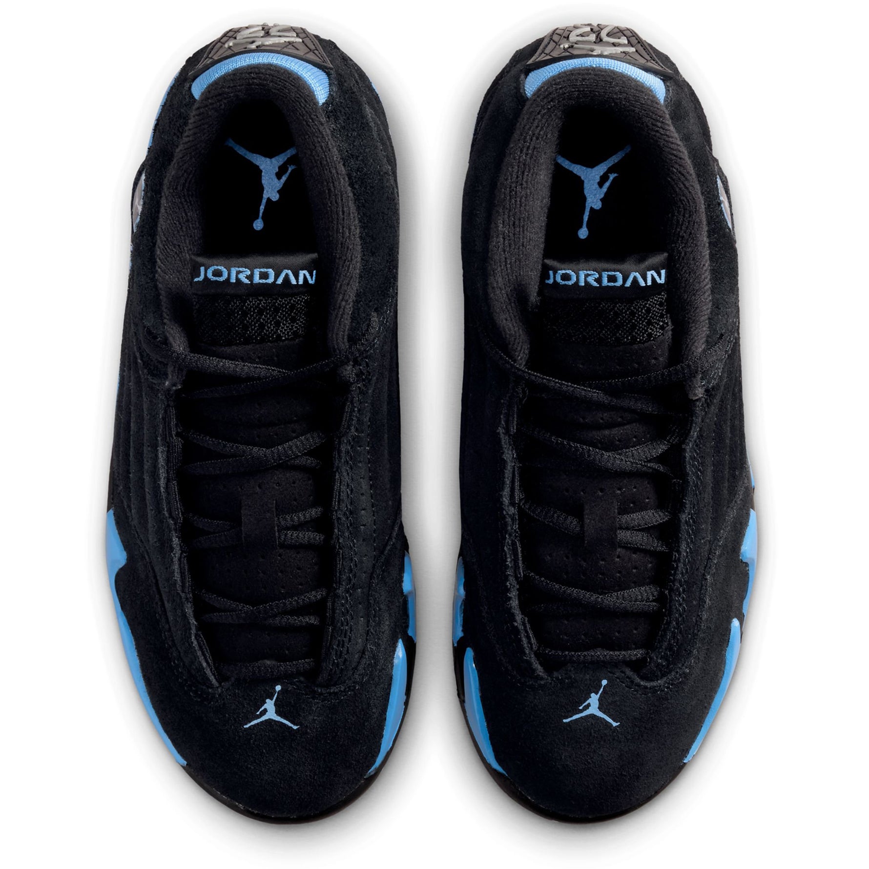 Sized for growing feet, the ?Black Carolina? Air Jordan 14 keeps the iconic lines and bold detailing of the original while adding kid friendly comfort. A sturdy upper, soft cushioning, and a flexible outsole help little ones move confidently through playtime and daily adventures. The Carolina accents bring a pop of color to a timeless Jordan silhouette.